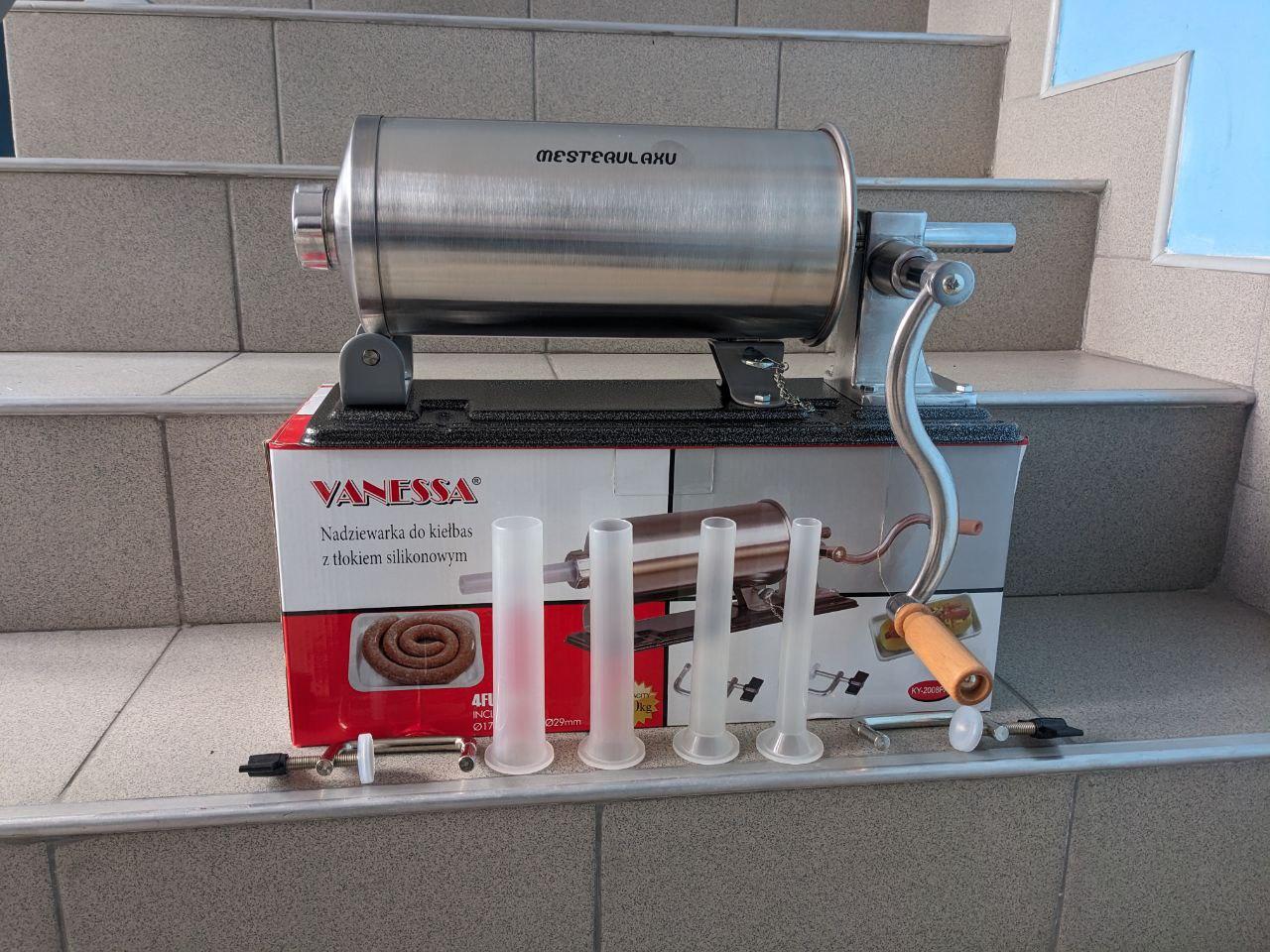Шприц для ковбас з нержавіючої сталі горизонтальний на 4 кг Vanessa з 4 насадками і силіконовим поршнем
